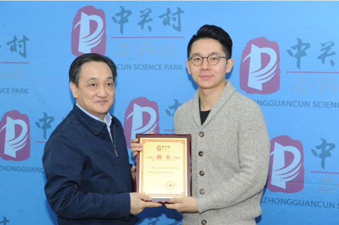 北京市政府副秘书长刘印春向印奇授予中关村企业家顾问委员会委员聘书
