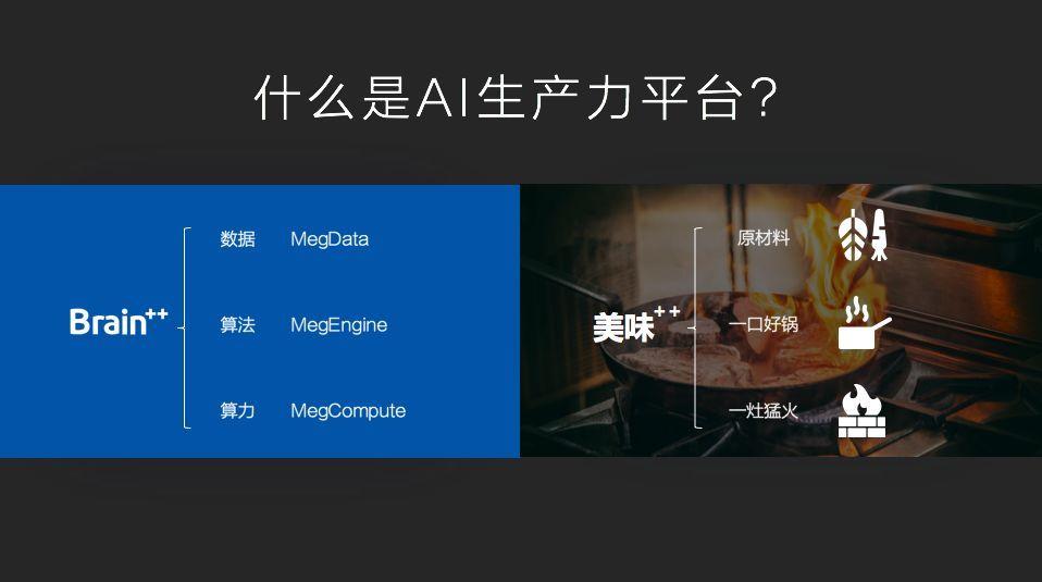 开源发布会上,旷视联合创始人、首席技术官唐文斌用厨房来做比喻,解释旷视的三位一体生产力平台——Brain++。