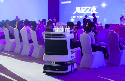 在2020年服贸会海淀之夜上,旷视MegBot-S800作为“侍应生”,穿梭在复杂的场地环境和随时变更行进路线的人群中,为嘉宾安全、准确、及时递送酒水物品。