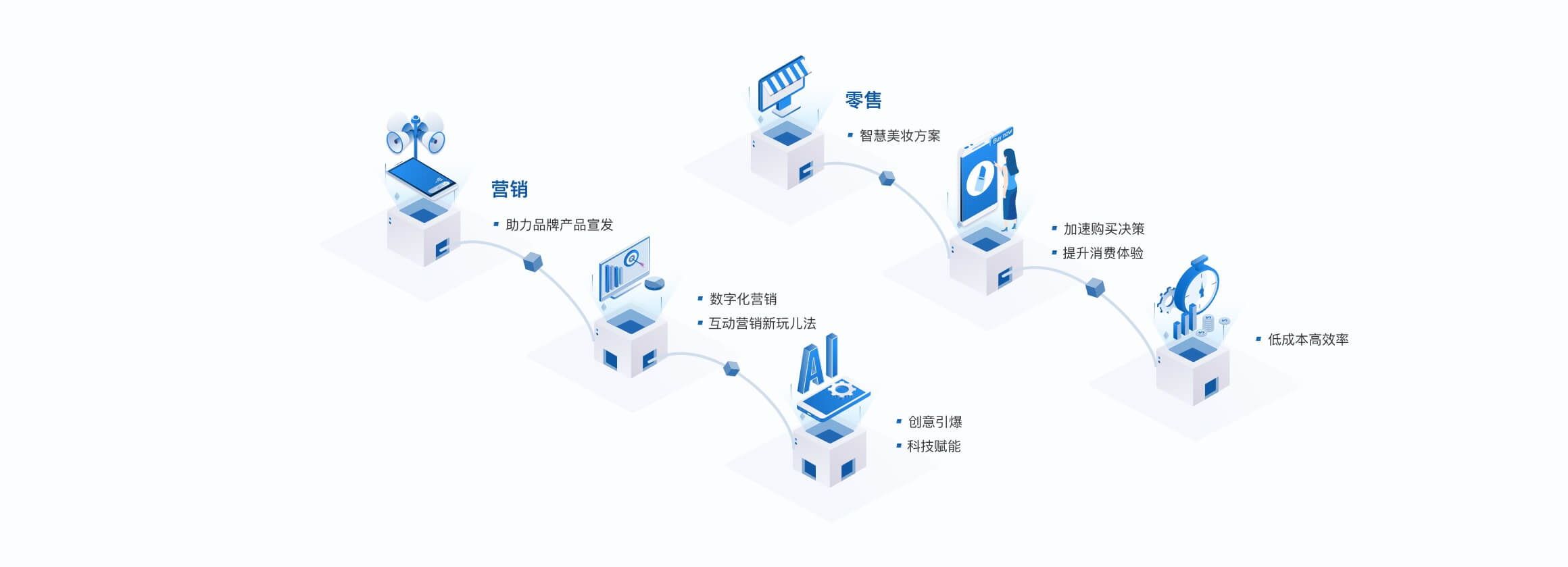 旷视依靠领先的“人脸关键点识别和色彩融合”AI算法,整合“面部特征、皮肤分析和虚拟试妆”诸多功能,基于“肤质和五官”精准分析,为行业客户和终端用户提供“虚拟试妆”方案,助力美妆行业营销和零售场景创新。