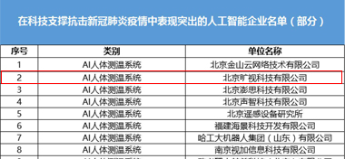 工业和信息化部科技司正式公布《在科技支撑抗击新冠肺炎疫情中表现突出的人工智能企业名单》,旷视上榜。