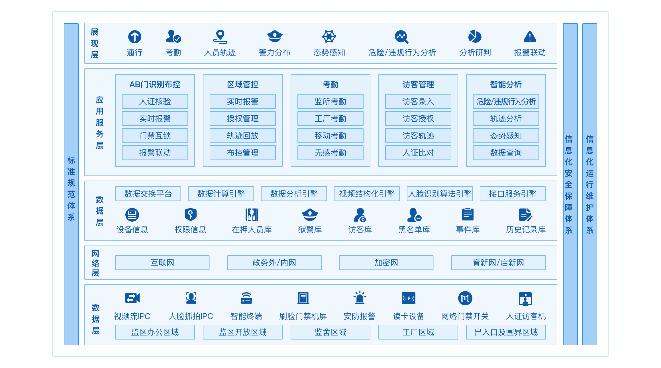 将人脸识别、车辆识别、异常行为检测与业务融合,打造法院、检察院、司法监所、公安监所各类场景智能化应用